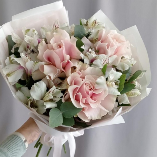 Букет из 3 французских роз и Альстромерии в Кинешме