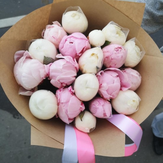 Букет «Бело-розовые пионы»