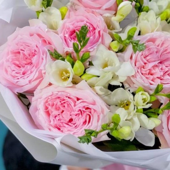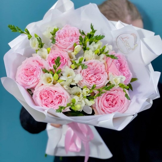 Букет из фрезий и пионовидных роз