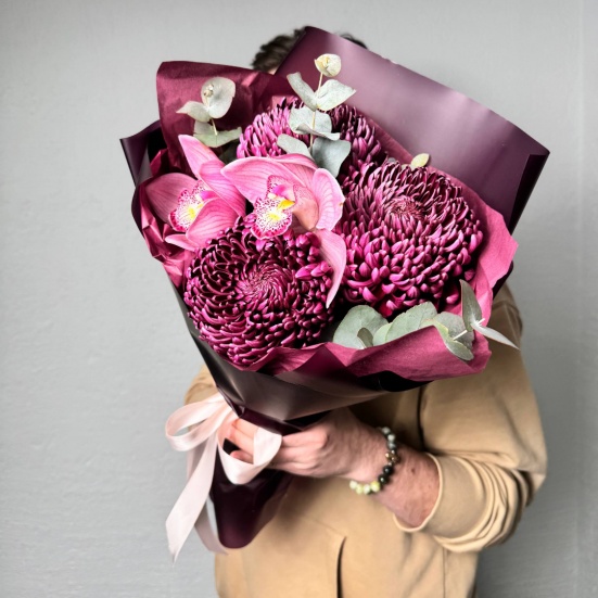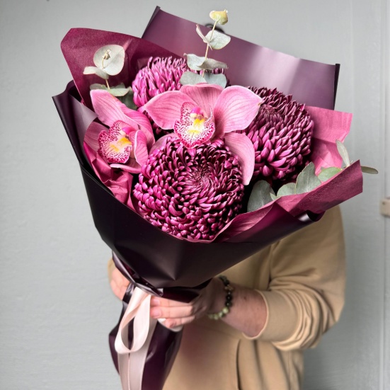Букет из хризантем Бигуди и Орхидей в Кинешме