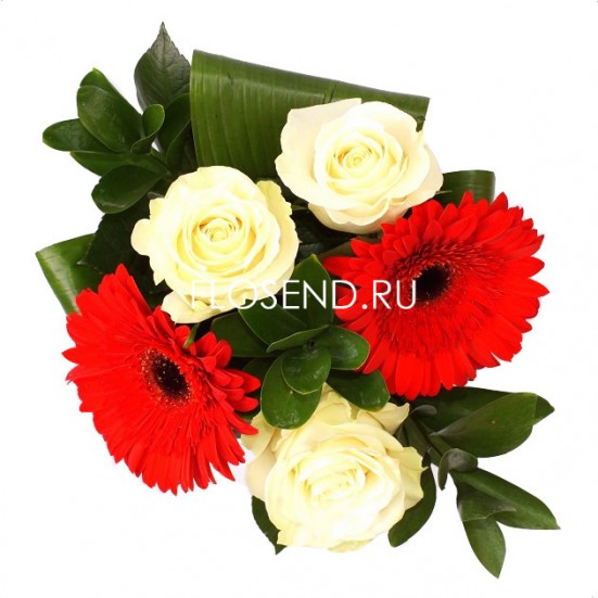 Букет «3 белых роз и 2 красных гербер» в Кинешме