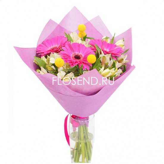 Букет «7 белых альстромерий и 3 розовых гербер»