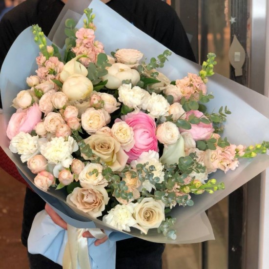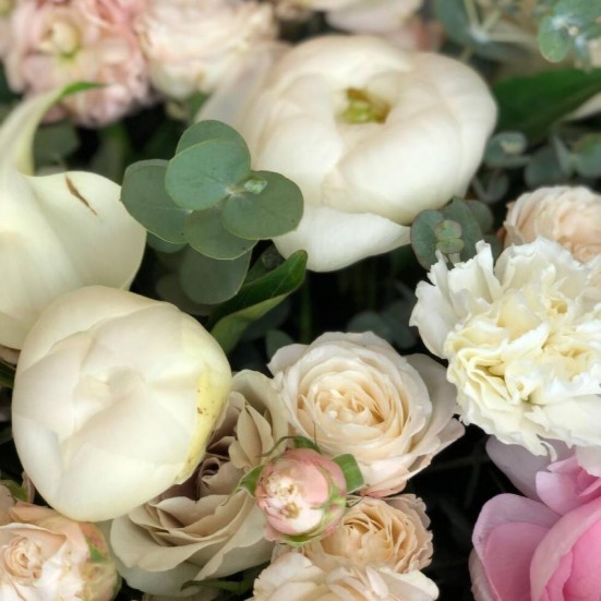 Букет «Пионовидные розы и ранункулюсы»