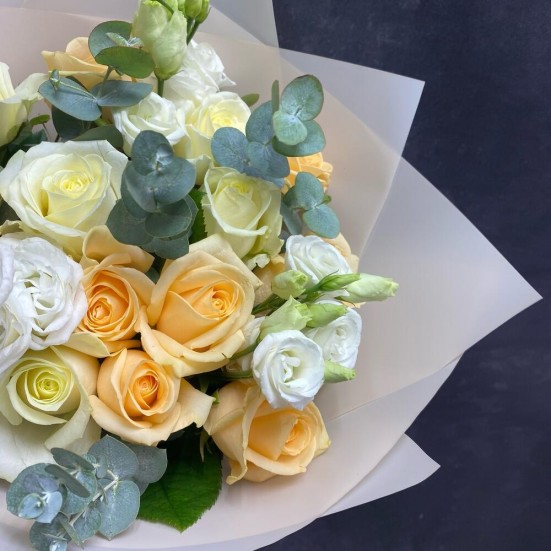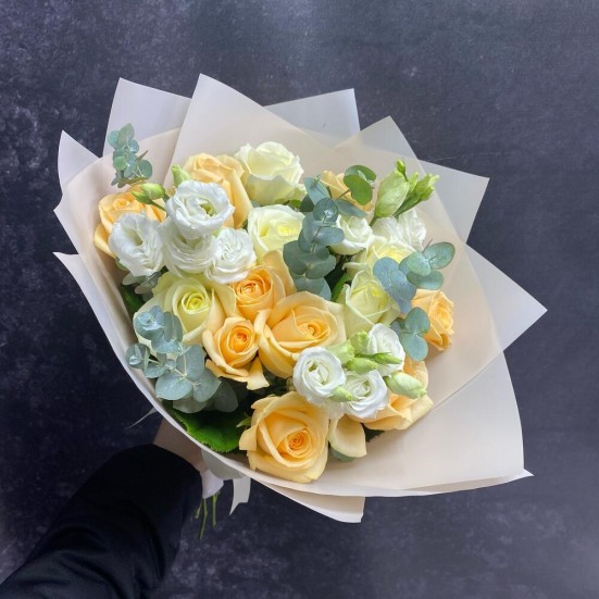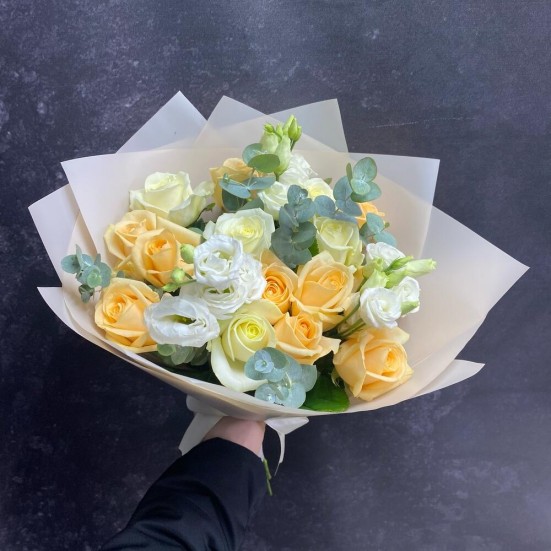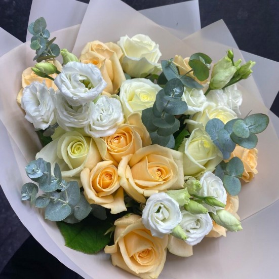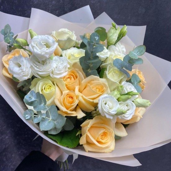 Букет из роз, эустомы и эвкалипта в Кинешме