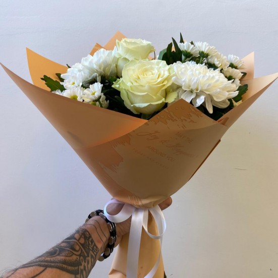 Букет «Розы и хризантемы»