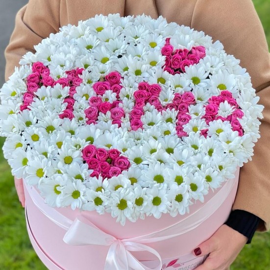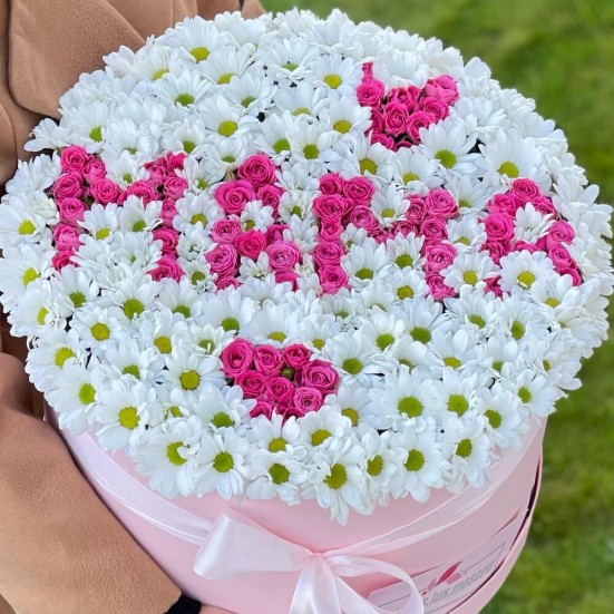 Хризантема ромашковая и роза в коробке Маме в Кинешме